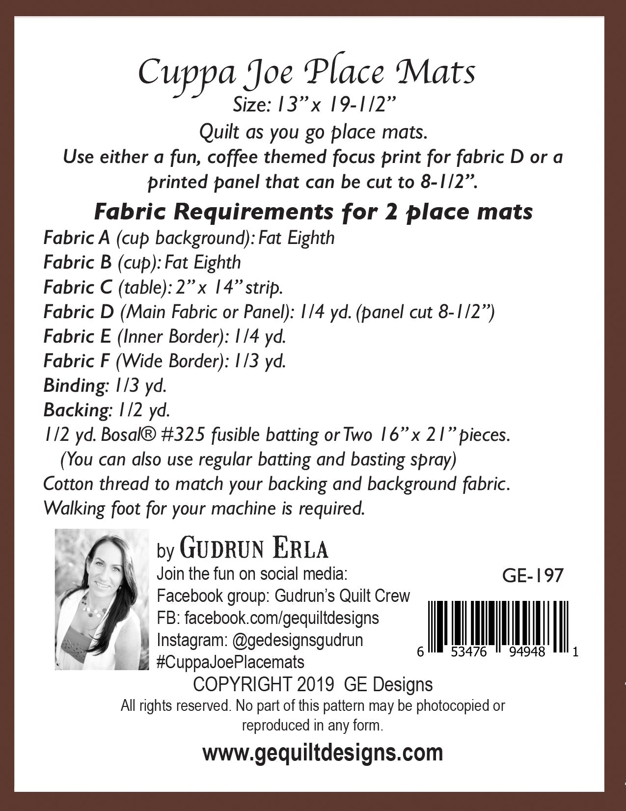 Add a touch of charm to your dining table with the Cuppa Joe Place Mats! This beginner-friendly Quilt As You Go pattern allows you to create 13” x 19 ½” place mats effortlessly, using either a printed fabric panel or your favorite focal print. Whether you're crafting for your home or a thoughtful gift, this project comes together quickly with simple, step-by-step guidance.