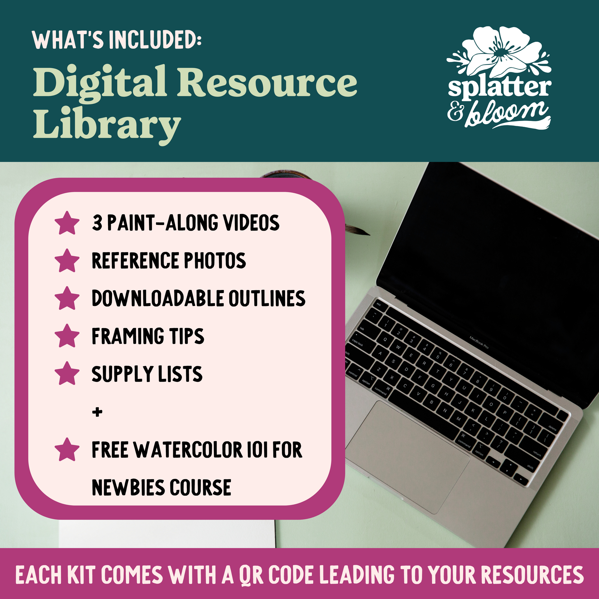 - Link to digital portal with paint-along videos for each design