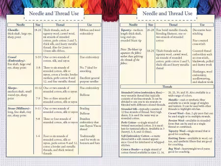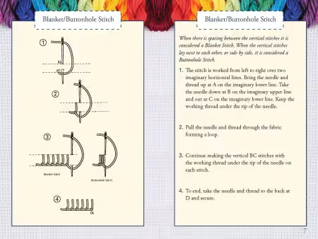 Hand Embroidery - Stitches at-a-glance features complete step-by-step how to for 30 favorite embroidery stitches such as backstitch, blanket/buttonhole stitch, chain stitch, feather stitch, fly stitch, French knot, running stitch, stem stitch and much more. Also, includes dozens of embroidery stitch options to inspire creativity along with tips and techniques. Needle and thread charts for handy reference. Presented in a clear, concise format.