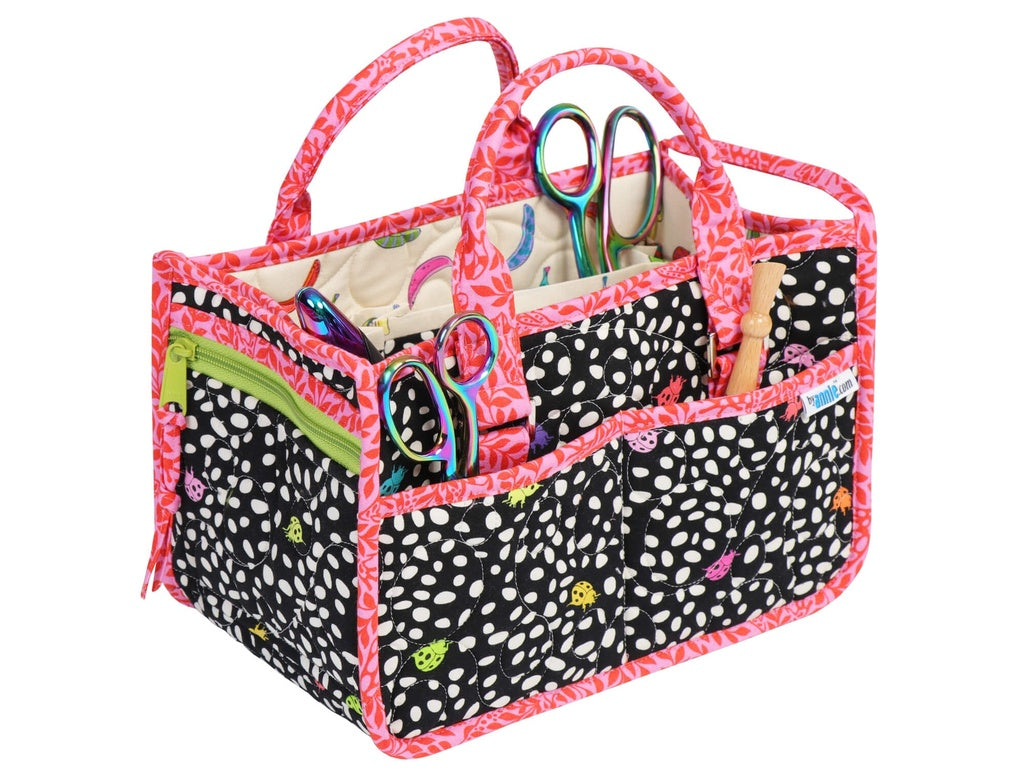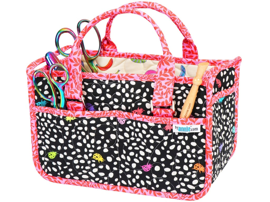 Control the clutter with this sturdy caddy. Its small footprint makes it perfect for using next to the sewing machine or on a desk or coffee table.