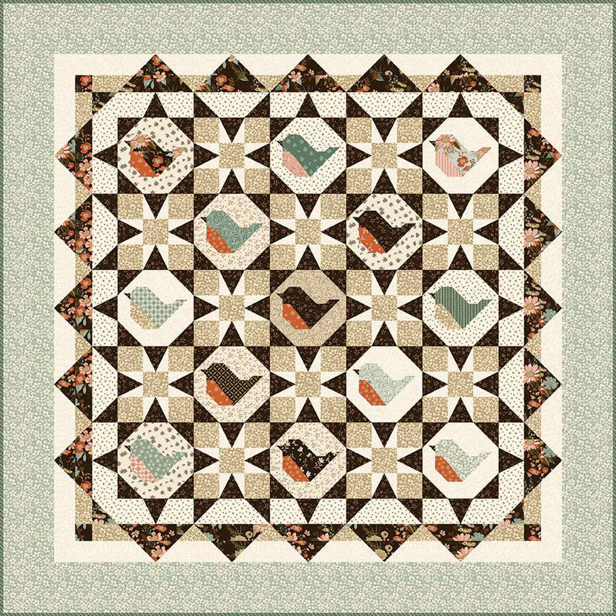 The Morning Song Quilt by Sandy Gervais of Pieces from My heart features alternating star and bird blocks. Finished size is 72" x 72".