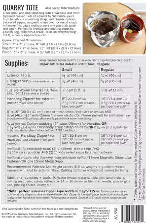 A fun bag in two sizes (small and mid-sized) with a flat base and zippered front pocket. Lots of options to customize yours, from handles, a crossbody strap, and closure options (recessed zipper, magnetic snap/Loxx, or metal snap) will make this bag a multipurpose one you grab again and again. Perfect for knitting and crafting supplies, a lunch bag, toiletries, or as an everyday bag! PLUS, a bonus zippered pouch! Features: two sizes to sew! Small and Regular bonus coordinating zippered pouch! flat base front exterior zippered pocket interior mesh slip pocket Optional adjustable crossbody strap Optional handles Optional recessed zipper or magnetic snap/Loxx/metal snap closure or no closure at all! Perfect for knitting and crafting supplies, a lunch bag, toiletries, or as an everyday bag!