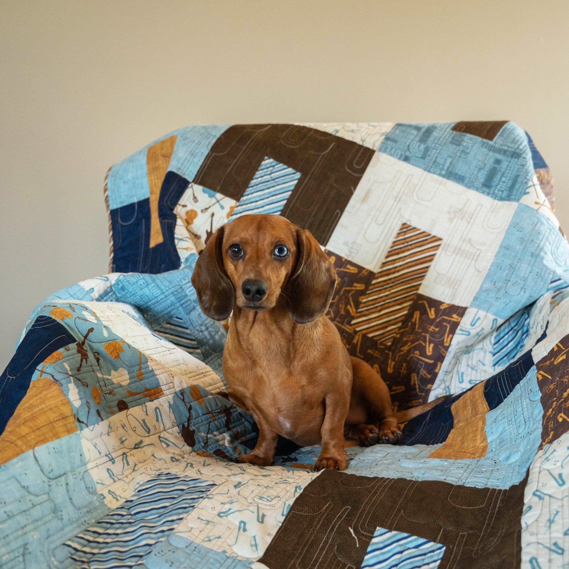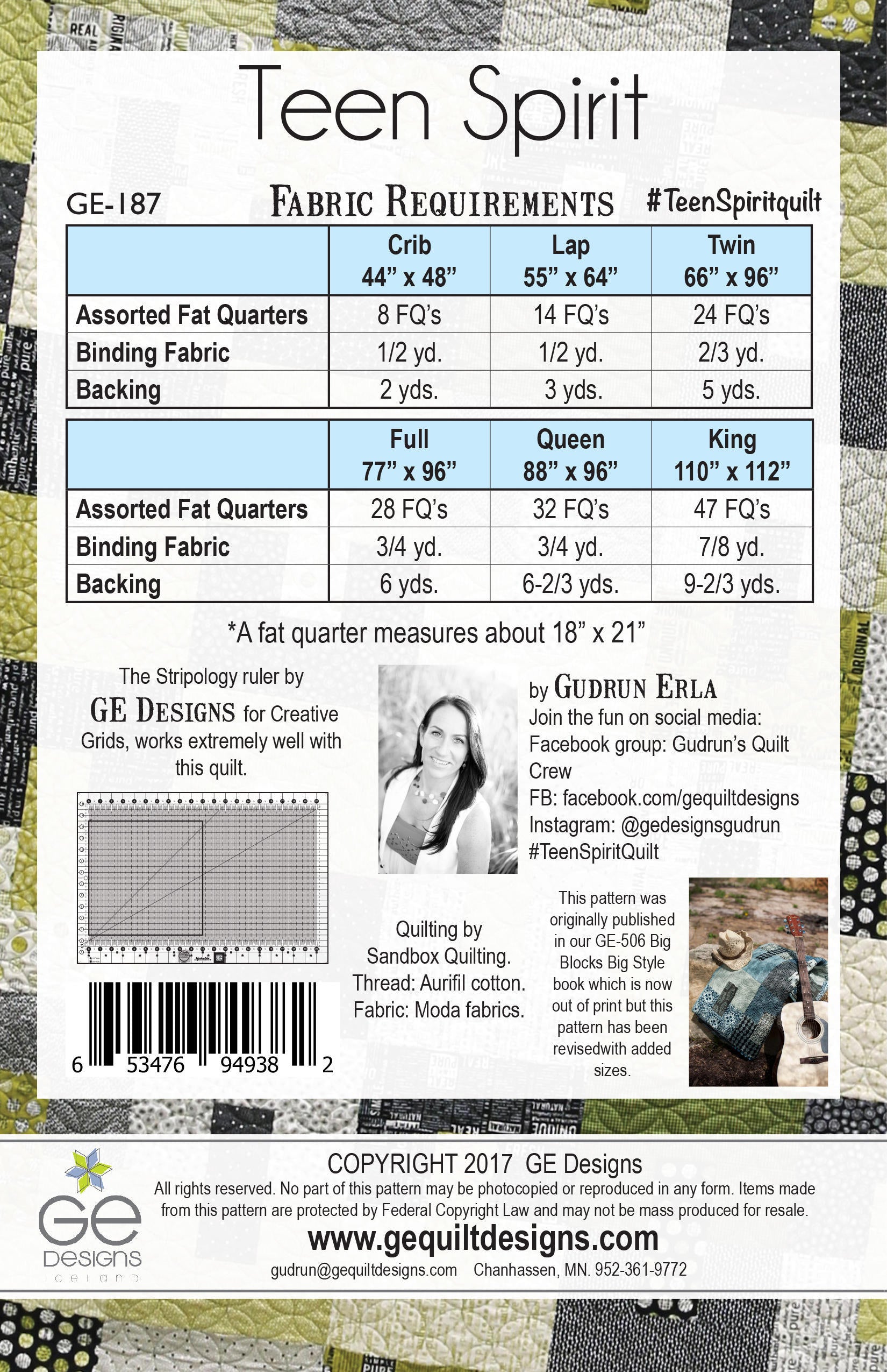 A quick and easy quilt to make for any occasion made with fat quarters, perfect for a graduate or to take to a dorm. The pattern was previously published in our Big Blocks Big Style book which is now out of print and discontinued. It features the Stripology ruler by GE Designs that can reduce your cutting time by 75%. The pattern comes with 6 different size options: crib, lap, twin, full, queen and king.